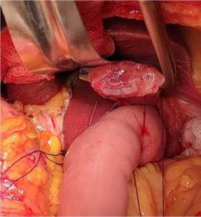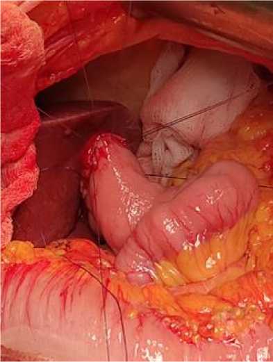 Рис. 2. Вид анастомоза после затягивания 2 швов