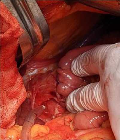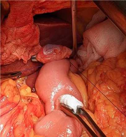 Fig. 3. Incision of the small intestine anterior wall