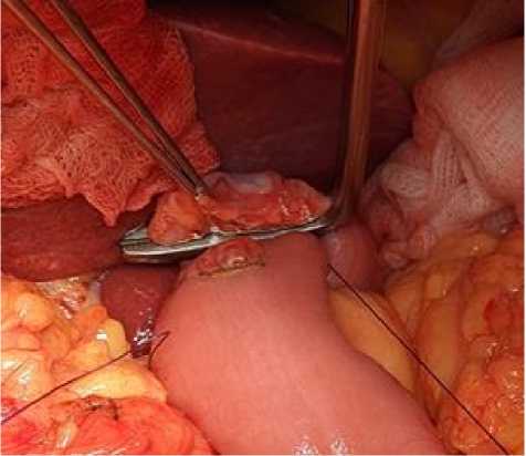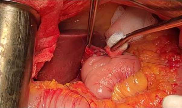 Рис. 3. Рассечение передней стенки тонкой кишки
