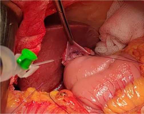 Обсуждение. Формирование ЭЕА после тотальной гастрэктомии остается одним из наиболее важных этапов вмешательства, так как определяет частоту развития послеоперационных осложнений и качество жизни пациентов. На сегодняшний день описано множество техник наложения ЭЕА, каждая из которых имеет как преимущества, так и ограничения [4, 5]. Основные проблемы, требующие решения, – это профилактика несостоятельности швов и рефлюкс-эзофагита, а также обеспечение адекватной проходимости анастомоза.