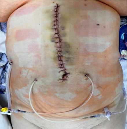 Рис. 5. Вид послеоперационной раны с введенными катетерами