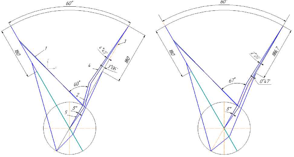 Table 1 Results of graphical analysis to ensure equality of the angle between the longitudinal axes of the main and trailing connecting rods with the angle of the cylinder camber
