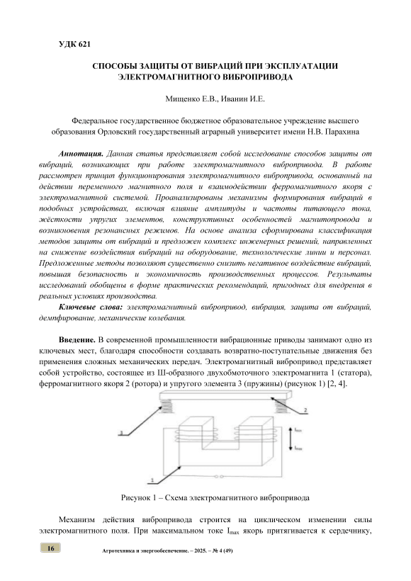 Текст научной статьи Способы защиты от вибраций при эксплуатации электромагнитного вибропривода
