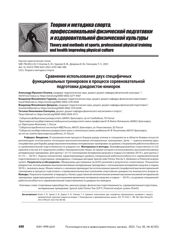 Сравнение использования двух специфичных функциональных тренировок в процессе соревновательной подготовки дзюдоисток-юниорок