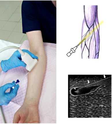 Заключение. В условиях многопрофильного хирургического и реабилитационного стационаров катетеризация периферических вен под контролем ультразвукового исследования с использованием трех техник уста-