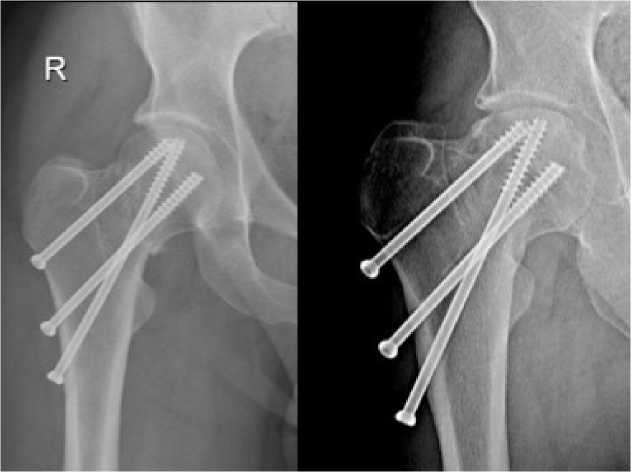 Сравнительная оценка результатов остеосинтеза переломов шейки бедренной кости методом двухопорной двухплоскостной фиксации и стандартной техникой трех параллельных винтов