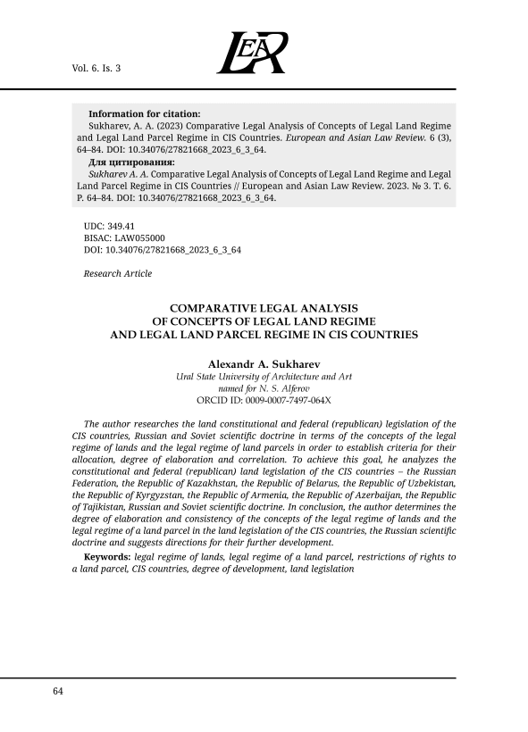 IDR: 14134904 | УДК: 349.41 | DOI: 10.34076/27821668_2023_6_3_64