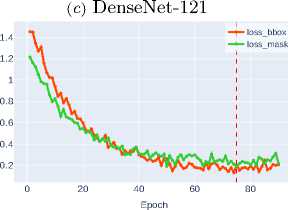 DenseNet-121 ( 0.0679 ), suggesting their suboptimal adaptation to the instance segmentation task.