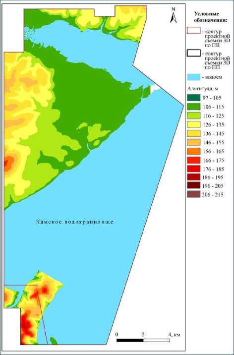 В административном отношении площадь работ расположена на территории РФ, а именно Пермского края. На участке проведены сейсмические работы МОВ ОГТ-3D по методике крестовых наблюдений. Территория района работ характеризуется развитой речной сетью – 61 %, заболоченность развита локально: в поймах долин рек, ручьев и на низких седловинах, составляет порядка 15 % от площади проектных работ.