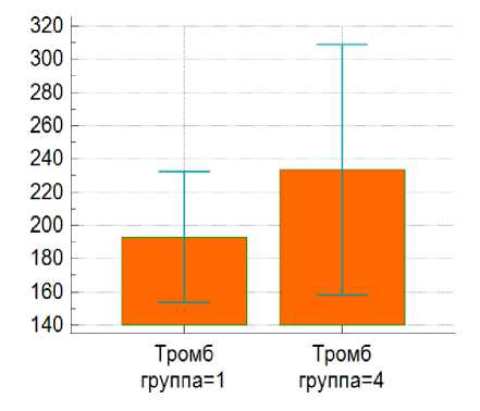 Сравнение показателя тромбоцитов между токсическими и другими (рис. 11). При сравнении токсических и других циррозов печени достоверно значимо выраженное снижение показателя тромбоцитов при токсической этиологии ЦП, что значимо подтверждает повышение геморрагических осложнений при токсических ЦП, чем при других.