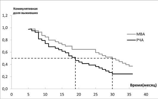 Рис. 5. Общая выживаемость при РЧА, МВА