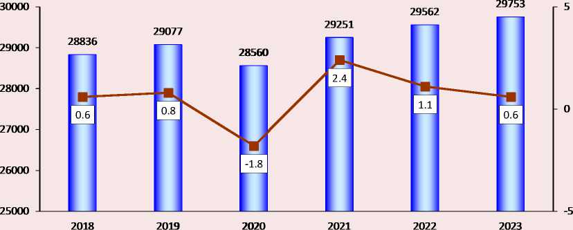 Land use reform in Russia, as in China, contributed to the active development of agriculture under market conditions. According to the Federal State Statistics Service (Rosstat), the gross harvest of, for example, grains and legumes after processing in 2023 amounted to 145.0 million tons: 2.2 times higher than in 2000. Concurrently, the per capita volume of this harvest increased from 446.3 to 990.9 kg per person, exceeding the food security threshold level by more than two times.