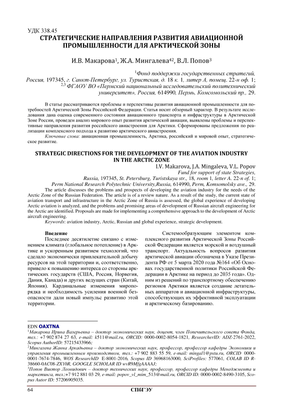 Стратегические направления развития авиационной промышленности для арктической зоны