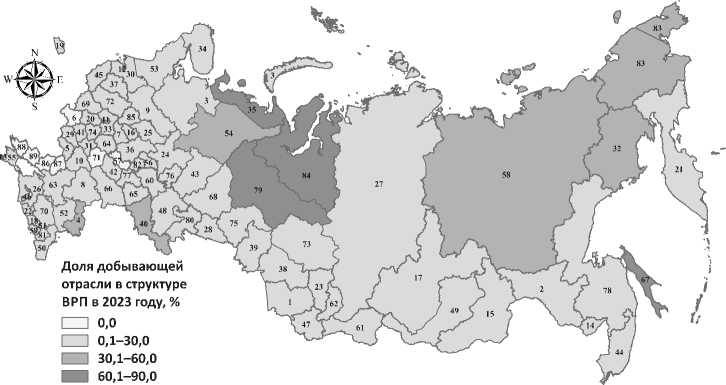 • Анализ регионов по доле добывающей промышленности за 2023 г.