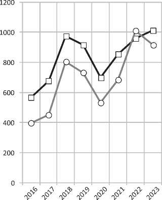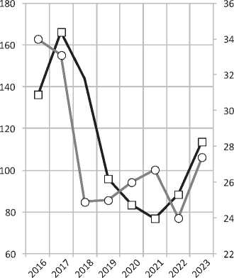 • Анализ динамики изменения экономических и экологических показателей в регионе, обусловленных промышленной деятельностью, за 2016–2023 гг.