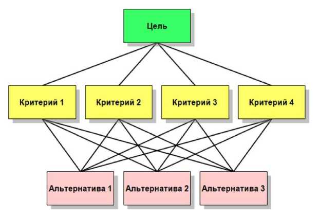 Рис. 5. Простейшая иерархия метода анализа иерархий (открытые источники)