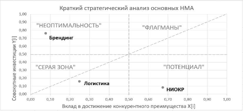 Рис. 6. Стратегическая карта распределения НМА предприятия (построено авторами на основе полученных результатов)