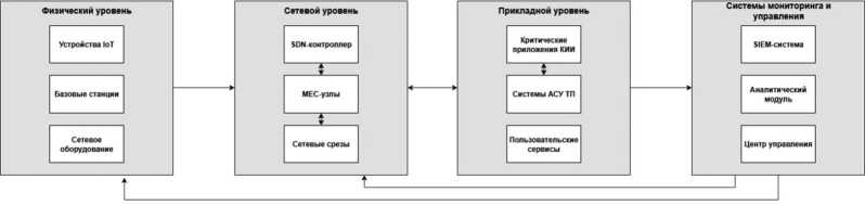 Проблема заключается в том, что преимущества архитектуры 5G – распределенность, виртуализация и программная определяемость – одновременно формируют принципиально новую, расширенную поверхность для кибератак. Такие компоненты, как программно-определяемые сети (SDN), виртуализация сетевых функций (NFV), периферийные вычисления (MEC) и сетевые срезы, создают уникальные векторы угроз [3]. Кибервоздействие на эти системы перестает быть виртуальной угрозой, трансформируясь в риски физического разрушения, масштабных техногенных аварий и коллапса городской среды. При этом традиционные подходы к безопасности, ориентированные на защиту статичного сетевого периметра, оказываются неэффективными в высокодинамичной и гетерогенной среде 5G. Существует острая потребность в практических решениях, которые обеспечивали бы защиту на протяжении всего пути данных – от датчика до центра управления.