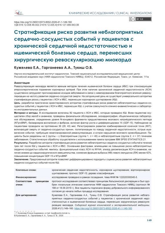Стратификация риска развития неблагоприятных сердечно-сосудистых событий у пациентов с хронической сердечной недостаточностью и ишемической болезнью сердца, перенесших хирургическую реваскуляризацию миокарда