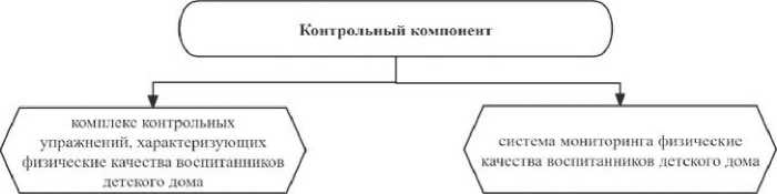 Контрольный компонент должен строиться с учётом специфики исследуемого контингента. Это связано с тем, что у воспитанников детского дома наряду с задачами физической подготовки выявляются педагогически значимые особенности в сфере социальной адаптации, морального поведения, поведенческих реакций и общего психологического состояния. Поэтому контроль в данной модели должен охватывать не только двигательный результат, но и изменения в дисциплине, организованности, самоконтроле и отношении к занятиям физической культурой на основе включения в образовательный процесс элементов тхэквондо.