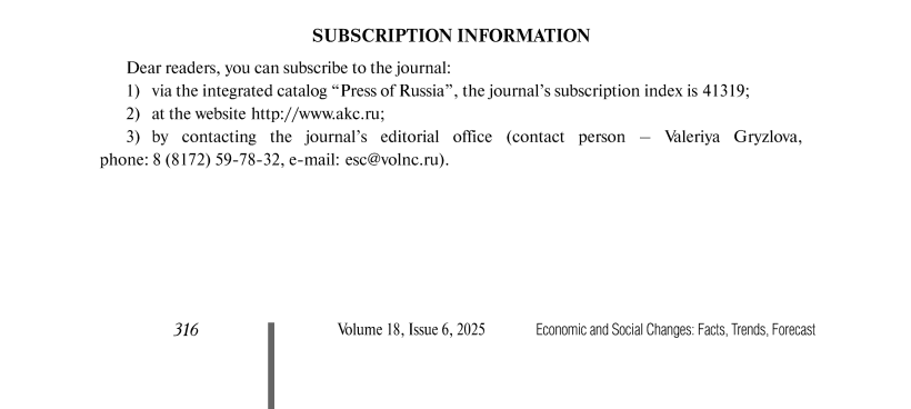 Журнал: Economic and Social Changes: Facts, Trends, Forecast @volnc-esc-en