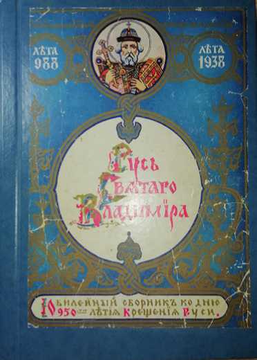 Большое значение в этом научном поиске имеют не только архивные матери-алы4 и дневниковые записи5, но и редкие публикации, издававшиеся за рубежом малыми тиражами, а поэтому часто недоступные и даже неизвестные исследователям. Примером подобного источника может служить небольшая книга «Русь Святого Владимира». Несмотря на то, что сборник объединил на своих страницах нескольких крупных церковных авторов, для широкого круга исследователей данный труд остается неизвестным. Это юбилейный сборник, вышедший к 950-летию Крещения Руси. Публикация была осуществлена Русской Духовной Миссией в Шанхае в 1938 г. Книга вышла тиражом в 1000 экземпляров. Судя по всему, весь тираж был распространен среди небольшого числа эмигрантов. Ничего не известно о его размещении в китайских, европейских и американских библиотеках. Не обнаруживаются следы этой книги и в библиотеках России. Уверенно можно констатировать лишь то, что с течением времени большая часть тиража была утрачена. Использованный при написании данной статьи экземпляр, по-своему уникален и имеет свою интересную историю.
