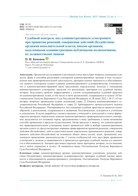 IDR: 143185248 | УДК: 342.92 | DOI: 10.19073/2658-7602-2025-22-4-613-626