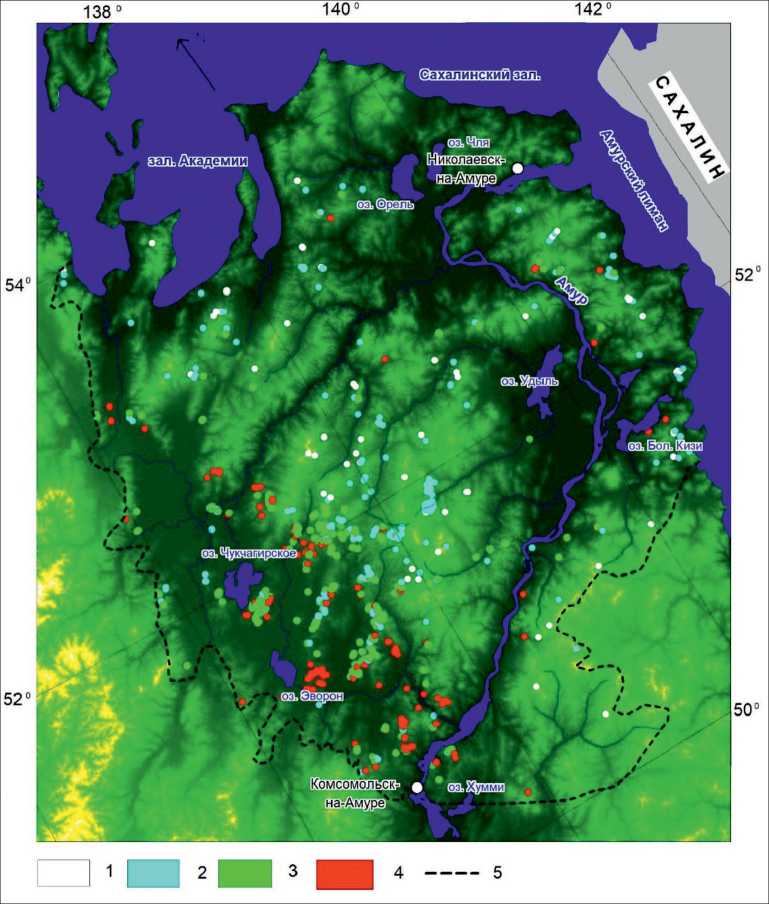1 – 0.54–0.704, 2 – 0.704–0.759, 3 – 0.759–0.8, 4 – 0.8–0.874; 5 – The Lower Amur River region border