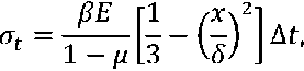 где t н и t вн – температуры на нагреваемой наружной и внутренней поверхностях, t – текущая температура, х – текущая координата (отсчет от внутренней поверхности), δ – толщина стенки, β – коэффициент линейного расширения, Е – модуль упругости, μ – коэффициент Пуассона.