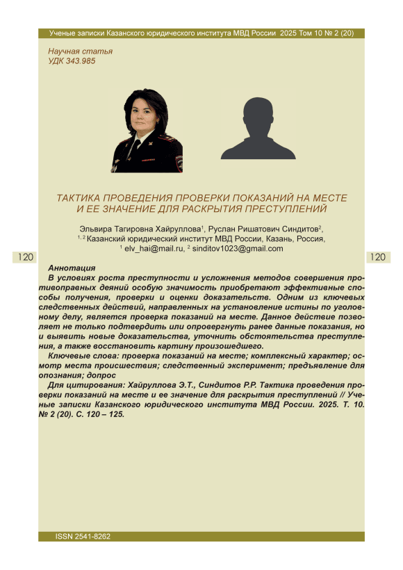 the Kazan Law Institute of MIA of Russia. 2025;20(2):120-125. (In Russ.)