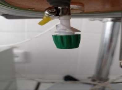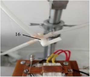 Тісті сорғы сұйықтықты ерітінді ыдыс-ынан ортадан тепкіш форсункаға жеткізуге арналған. Термостат 13 жүйеде белгіленген температураны ұстап тұрады. Ерітінділерге арналған контейнерлер, термостат, тісті сорғы силикон 14 құбырлармен қосылған. Панельде сонымен қатар тісті сорғыға құбырлар арқылы ортадан тепкіш форсунка жалғанған. Жұмыс ыдысындағы ерітінді ортадан тепкіш форсунка арқылы шашырату әдіспен (CaCl 2 ) салқын-датылған ерітіндісі бар контейнерге құйылады [9, 10].