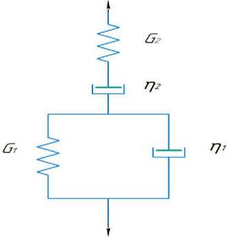 Сурет 5. Бюргерс механикалық моделі у Gi - лездiк cepniMgi деформация модулi, Па; G2 - баяу cepniMgi деформация модулi, Па; ni — Ньютон тұтқырлығы, Па·с; η2 – пластикалық ығысу тұтқырлығы, Па·сү.