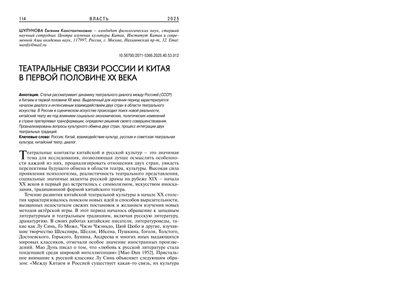 Текст научной статьи Театральные связи России и Китая в первой половине XX века