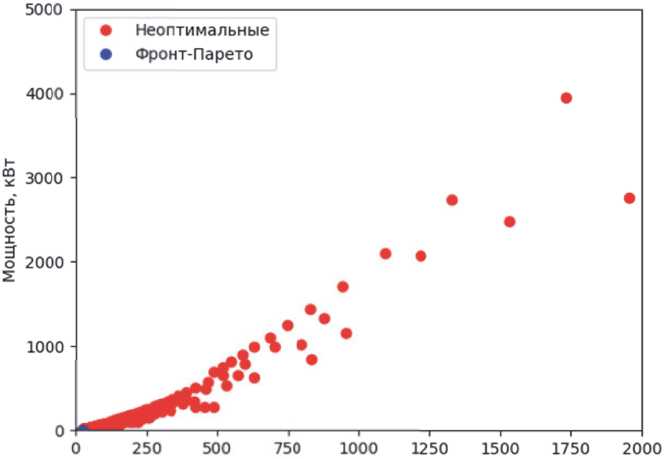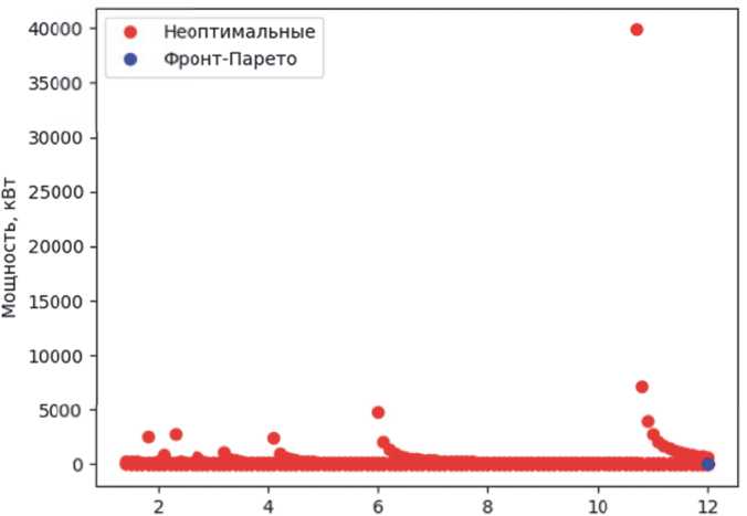 Рис. 2. Фронт Парето для ожижителей, работающих по циклу Капицы