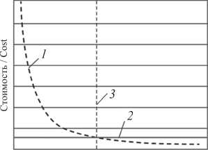 Количество изделий, произведенных с применением аддитивных технологий, не имеет четкой зависимости от конечной стоимости. На графике точка рентабельности находится на пересечении кривых (рис. 2) [15].