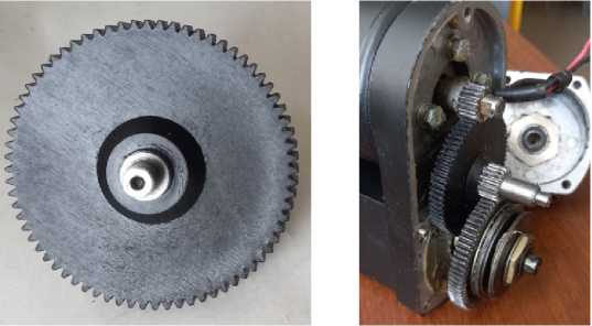 а) зубчатое колесо, произведенное методом 3D-печати; b) редуктор привода в сборе