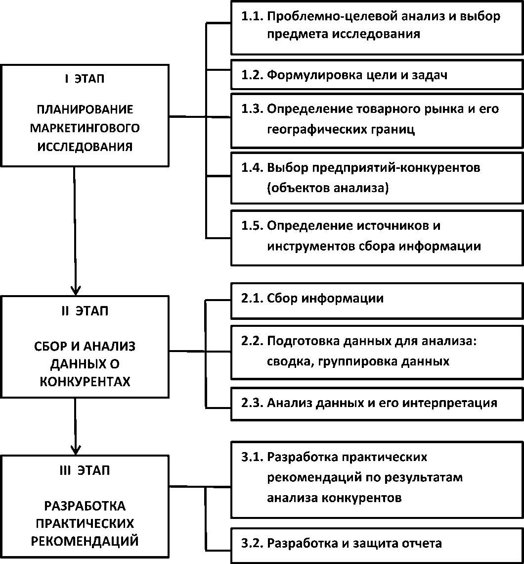 • выбор предприятий-конкурентов как объектов исследования;