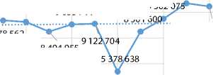 По показателю расходов СКО в округе можно сделать вывод о менее выраженной тенденции роста. По представленным линейным трендам на рис. 4 показателей доходов, расходов и прибыли СКО можно сделать вывод, что по показателю доходов ожидается средне-годичное увеличение данного показателя на 2 млн рублей. По показателю расходов СКО ожидается среднегодичное увеличение данного показателя на 1 млн рублей, а по показателю прибыли среднегодичное увеличение значений данного показателя составит 940 тыс. руб.