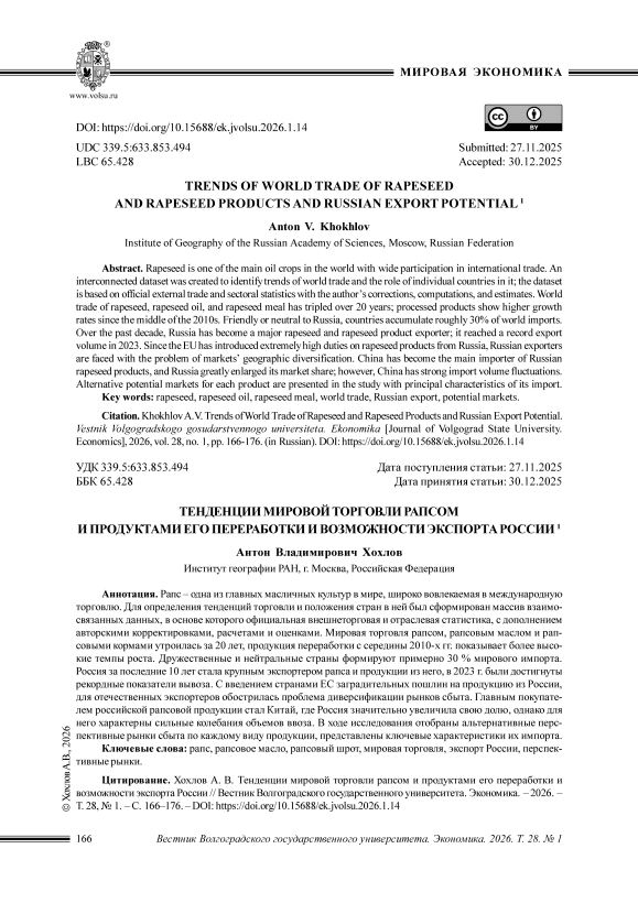 IDR: 149150629 | УДК: 339.5:633.853.494 | DOI: 10.15688/ek.jvolsu.2026.1.14