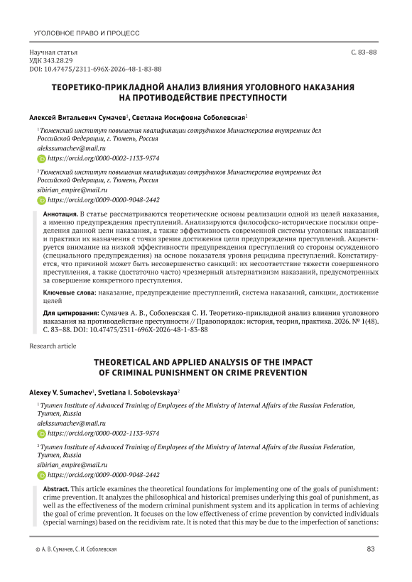 IDR: 14134599 | УДК: 343.28.29 | DOI: 10.47475/2311-696X-2026-48-1-83-88