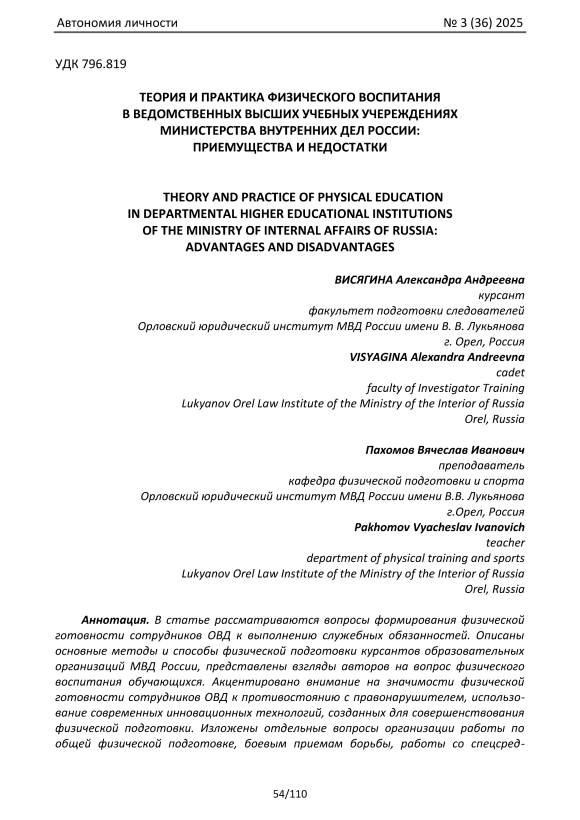 Теория и практика физического воспитания в ведомственных высших учебных учреждениях Министерства внутренних дел России: преимущества и недостатки