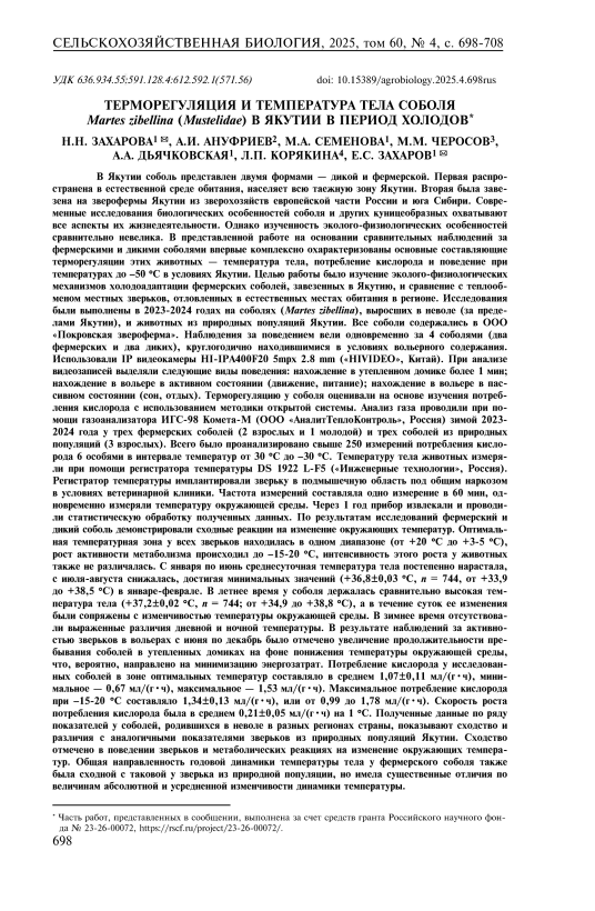 IDR: 142246206 | УДК: 636.934.55:591.128.4:612.592.1(571.56) | DOI: 10.15389/agrobiology.2025.4.698rus