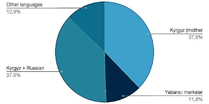 An analysis of language preferences in outdoor advertisements that include national identity indicators shows that Kyrgyz (37.6%) and Kyrgyz–Russian bilingual usage (37.6%) are the most frequently employed language forms. In comparison, Russian alone (11.8%) and other languages (12.9%) are used to a more limited extent. These findings indicate that both the mother tongue and bilingual communication practices play a significant role in the representation of national identity in outdoor advertising. At the same time, the coexistence of Kyrgyz and Russian reflects the multilingual public structure of Kyrgyzstan, suggesting that advertisements simultaneously address national identity and the broader linguistic diversity of the public sphere.