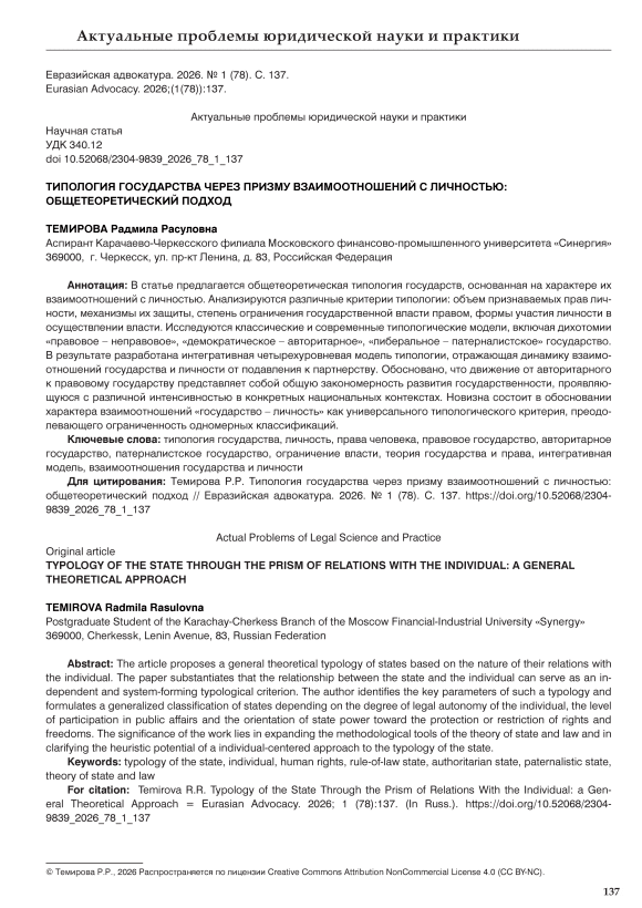 IDR: 140314311 | УДК: 340.12 | DOI: 10.52068/2304-9839_2026_78_1_137