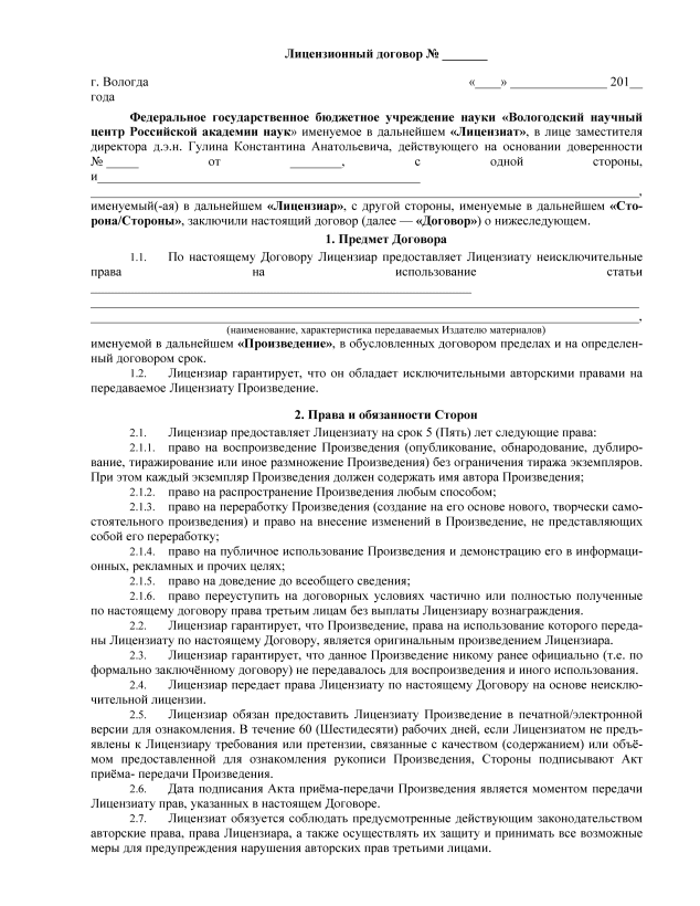 Типовой лицензионный договор - Проблемы развития территории
