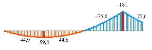 Рис. 1. Результаты расчета статически неопределимой балки: