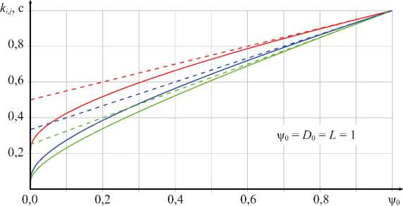 где D 0 — начальная жесткость; L — длина конечного элемента; ψ 0 и ψ 1 — коэффициенты, учитывающие изменение начальной жесткости D 0 в начале и конце элемента соответственно. При этом ψ 0 ≥ 0 и ψ 1 ≥ 0.