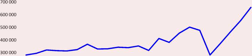 Currently, the Vologda Region is not a key tourist region in Russia. According to the 2024 results, the region took 43rd place in the national tourism ranking6, dropping by 5 positions over the year. In 2024, 658 thousand people accepted collective accommodation facilities in the region, which is more than in 2023 (554 thousand people; Figure ). In general, a steady trend of tourist flow growth was noted in 2002–2024: the indicator doubled.