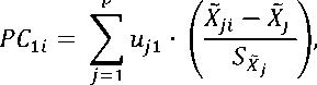 where is the va lue of the j -th variable for the i -th object (city), is the average value of the j -th variable (a specific indicator from Table 1); is the estmate of the standard deviaton of the j -th variable; is the factor loading of the first principal component on the j -th variable.