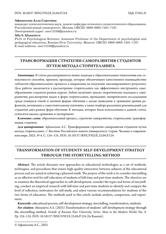 Трансформация стратегии саморазвития студентов 125 путем метода сторителлинга 125